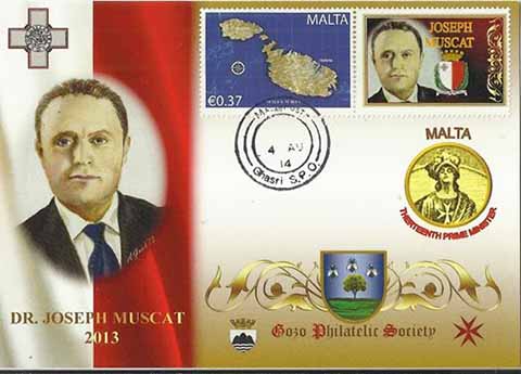 On August 2014, the Gozo Philatelic Society issued the last two cards of the monthly series of personalized stamps showing the Malta's Prime Ministers (since 1921 Self-Government).